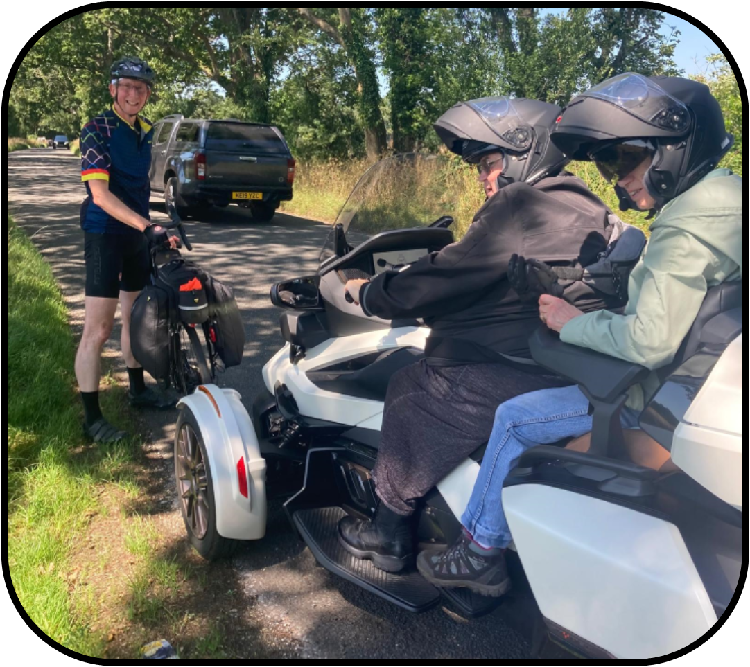 Andy and I have been cycling together for over five years. We are part of a group of four that has biked from coast to coast across the north of England, from London to Paris, around the Isle of Wight and, most recently, to Cheltenham where we visited Andy's parents' graves (they both passed away last year).